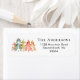 Einfache und elegante Rücksendeadressen-Aufkleber für Ihre Urlaubskorrespondenz mit einer wunderschönen Wasserfarbe, die von Pinienbäumen abstrakt ist, in abgestuftem Salbei, Rot, Gold und Orange und Ihren Namen und Ihre Adresse in einfacher moderner Typografie.