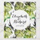 Wasserfarbene tropische Blätter Hochzeitsmonogramm Weinetikett