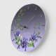 Wasserfarbene violette Blütensäcke Große Wanduhr