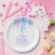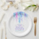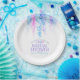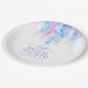 Aquarellfarbene, blumenblaue Teller aus lila Brautparty. Lose Blume botanische Aquarellmalerei Brautparty vor Hochzeit Papier Party Teller. Schöne Blumenkunst lockere Aquarellkunst Design ideal in hübschen Farbtönen wie Blau, lila und Rosa. Personalisieren Sie mit Ihrer eigenen Braut, um den Namen zu sein. Andere passende Hochzeitsartikel sind erhältlich. © Original watercolor art and design by Sarah Trett www.sarahtrett.com for www.mylittleedenweddings.com
