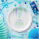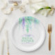 Aquareller Blumengrün lila Brautparty Teller. Lose Blume botanische Aquarellmalerei Brautparty vor Hochzeit Papier Party Teller. Schöne Blumenkunst lockere Aquarellkunst in hübschen Grüntönen und lila. Personalisieren Sie mit Ihrer eigenen Braut, um den Namen zu sein. Andere passende Hochzeitsartikel sind erhältlich. © Original watercolor art and design by Sarah Trett www.sarahtrett.com for www.mylittleedenweddings.com