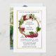 Moderne elegante Watercolor Trauben und Weine Holzreath Wedding Einladung umfasst burgundische Rose, rosa Rosen, rote Rosen und botanische Vegetation. Goldrahmen. Foto zurück.