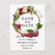 Moderne elegante Watercolor Trauben und Weinreben Save the Date Hochzeitsankündigung Postcard beinhaltet bordeauxrote Rose, rosa Rosen, rote Rosen und botanisches Grün.