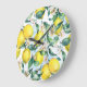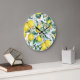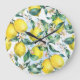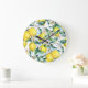 Wasserfarbene Zitronen, frischer Zitruszweig. Große Wanduhr