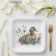 Wasserfarbene Ente in Teich Blume auf Weiß.