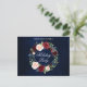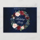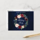 Eleganter Watercolor Blue Background mit Watercolor Burgundy Marsala Blumengarten Holiday Party Einladung Postcard. Freuen Sie sich auf schöne Rose und botanische Vegetation.