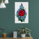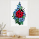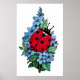 Wasserfarbener Niedlicher Ladybird mit blauen Blum Poster