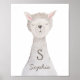 Wasserfarbenes niedliches Lama-Poster mit Monogramm und Name für das Kinderzimmer Zimmer.