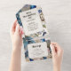 Erleben Sie die Perfektion der Bequemlichkeit mit unserer Floral Chinoiserie Wedding All-in-One Einladung. Dieses innovative Design verbindet die Einladungs-, UAWG- und Detailkarte nahtlos zu einem Single, einem zusammenhängenden Meisterwerk. Abschied von der Mühe, mehrere Karten zu verwalten - unsere All-in-One-Einladung ist eine zeitraubende und stressfreie Lösung für Paare, die skurrile Eleganz suchen, ohne Kompromisse einzugehen. Informieren Sie sich über die Faszination der Chinoiserie-Kunst und das Design der Chinoiserie-Flora und -Fauna. Jedes zarte Blatt und jedes komplizierte Muster erzählt eine Geschichte der Eleganz und schafft die Bühne für eine Feier, die so bezaubernd wie bequem ist. Machen Sie Ihre Hochzeitsankündigung einzigartig mit dem individuellen Charme der Floral Chinoiserie All-in-One Einladung. Personalisieren Sie Namen, Datum und Veranstaltungsinformationen, um eine Einladung zu erstellen, die die Individualität Ihrer Liebe widerspiegelt. Diese persönliche Touch sorgt dafür, dass Ihre Hochzeitsankündigung nicht nur eine Formalität, sondern auch ein geschätzter Sake für Sie und Ihre Gäste ist.