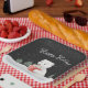 Niedlicher Aquarellbär mit heißer Schokolade in roter Tasse und Schneeflocke auf schwarzem Hintergrund. Die Hintergrundfarbe kann geändert werden. Text ist bearbeitbar.