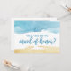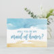 Dieser Aquarellsand und das Meer werden Sie meine Trauzeugin-Karte ist perfekt für eine Hochzeit am Strand. Das abstrakte Design zeichnet sich durch eine gelbe und blaue Aquarellstruktur aus, die so gestaltet ist, dass die Meeresvibes am Meer sichtbar werden. Passen Sie die Karte mit dem Namen der Braut und der Trauzeugin an.