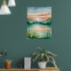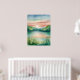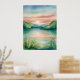 Wasserfarbener See Landschaft mit Bergen & Sonnenu Poster