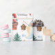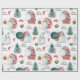 Schönes Vintag aussehendes Aquarell Weihnachtsmann , Schneemann und Weihnachtsbaumumhüllungspapier mit fröhlichem Weihnachtstext.