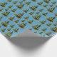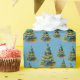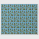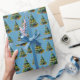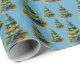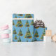 Festliche Weihnachtsbaumschneeflocke Zeichnend blaues Wrapping Paper. Festliche Wasserfarbe zeichnend von einem bunten Weihnachtsbaummuster und weißen Schneeflocken.