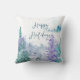 Ein Digitalbcon Bilder Design mit einem farbenfrohen, blauen, lila und blauen Aquarellbild in diesem einzigartigen "Watercolor Winter Landscape Happy Holidays" Square Throw Kissen - Machen Sie ein Modestatement in dieser Urlaubssaison mit diesem farbenfrohen und einzigartigen winterfarbenen Design! VOLLSTÄNDIGE DEKORATION , PERSÖNLICHE ZUGÄNGE UND/ODER PASSENDE GESCHMACKIDEEN AUS DEM PASTEL UND WASSERFARBEN KOLLEKTION, DIE FÜR DEN KAUF DURCH DIESE GESCHICHTE ZUR VERFÜGUNG STEHEN.