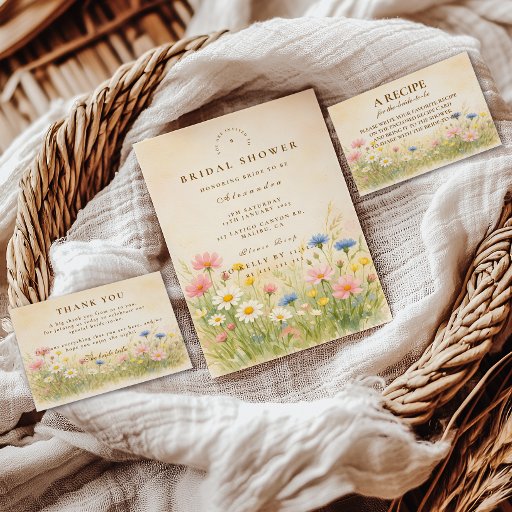 Wasserfarbenes Brautbad im Wildblumenwiese-Stil Einladung