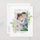 Nur verheiratet! Ankündigen Sie Ihre Hochzeit mit Familie und Freunden mit diesem anpassbaren Foto gerade verheiratet Postcard. Es verfügt über ein skurriles Skript und Aquarellrahmen. Diese grüne Postkarte ist ideal für Hochzeiten im Frühjahr und Sommer. Personalisieren Sie diese durch Hinzufügen von Namen, Foto und anderen Details.