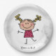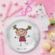 Wasserfarbenes Happy Strichfigur-Mädchen Rosa Klei Pappteller