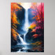 Wasserfarbenes Herbstwasserfallgemälde Poster