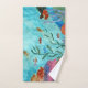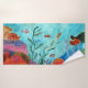 Wasserfarbenes Set mit Korallenriff im Wasserbad. Dieses Bath Handtuch Set verfügt über ein farbenprächtiges, handbemaltes Korallenriff mit Fisch und Quallen!