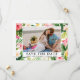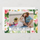 Moderne tropische Aquarellblumen, Grünpflanzen und Palmen Blätter Save the Date Foto Verlobung Announcement Card
