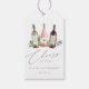 Diese eleganten Weinproben mit Themenvorzügen sind die perfekte Touch für Brautpartys, Verlobungsfeiern oder Proben-Dinners, die in einem Weinkeller, einem Verkostungsraum oder einem Weingarten veranstaltet werden. Das Design umfasst ein Trio aus Weinflaschen (weiß, Rose und rot), die mit grünen Aquarellfarben-Eukalyptus-Blätter und Blattwerk geschmückt sind. In der Schriftzeichen-Schrift erscheint "Liebe bejubeln". Persönliche Gestaltung des Weinflaschenlabels mit den Initialen des Paares und Angabe der Namen und des Hochzeitsdatums oder Veranstaltungsdatums.