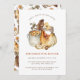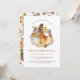 Dieses elegante Friendsgiving Dinner Invitation bietet schöne Aquarellfarben-Blätter, Kürbisse, eine Tasse Suppe und Blume. Auf der Rückseite des Einladens befindet sich das gleiche Kunstwerk in einem skurrilen Muster.
