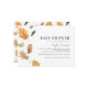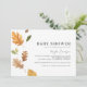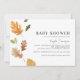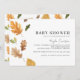 Einfache, moderne Babydusche mit einem Off-Center-Design und Aquarellbildern fallender Blätter. Der Text ist vollständig editierbar; der Überschriftentext kann von "BABY SHOWER" zu "IT'S A BOY" usw. oder einem kurzen Vers geändert werden. Die Rückseite weist ein koordinierendes Herbstmuster auf.