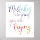 Fehler sind der Beweis, dass du es versuchst. Das perfekte Angebot für ein Klassenzimmer oder eine schöne Ergänzung zu Ihrem handwerklichen Zimmerdekor. Mit einer farbenfrohen, weichen Rosa und lila Aquarelltypografie.
