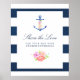 Die trendige Seefahrer-Hochzeit und die Liebe-Poster mit einem blühenden Aquarellanker, Blume und Marinestreifen teilen sich.