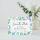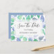 Diese speichern die Datumskarten mit Aquarellfarben, die staubblaues und grünes Blattwerk aufweisen. Personalisieren Sie sie mit Ihrem eigenen Text. Sie sind Teil einer Kollektion, die eine komplette Palette von passenden Hochzeitseinladungen und Schreibwaren umfasst. Besuchen Sie unseren Shop oder schauen Sie sich unsere Kollektionsseiten an, um die ganze Palette von Artikeln zu sehen, die Sie für Ihre Hochzeit personalisieren können.