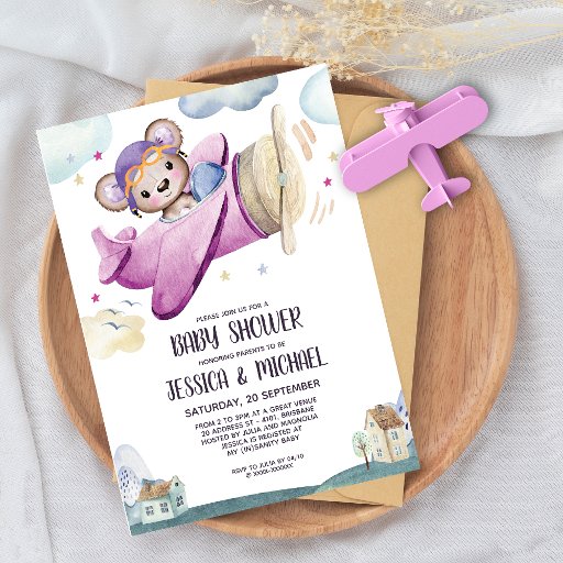 Girl Teddy Bear Airplane Baby Shower CollectionDesignt von Rachel Oliveira