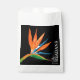 Personalisierte Papiertüten mit Ihrem Nachnamen, Ihrem Hochzeitstag und einem exotischen tropischen Vogel paradiesischer Aquarellfarbe Blume auf schwarzem Hintergrund. Verwenden Sie den Link Weitere Informationen anpassen, um Text hinzuzufügen oder zu löschen, Text anzugleichen, Schriftart, Schriftart und Layout zu ändern. PASSENDE Artikel in unserem Geschäft.