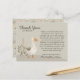 Mit unserer bezaubernden Dankeschön-Karte, die mit Gänsen und üppiger Vegetation geschmückt ist, möchten wir Ihnen herzlich danken. Die Vorderseite ist mit einem anpassbaren Text versehen, der es Ihnen ermöglicht, Ihre Nachricht zu personalisieren, während die Rückseite ein hübsches Muster von kleinen Gänsen und Herzen zeigt. Ideal, um sich nach Ihrer Babydusche zu bedanken. Liebe und Wertschätzung mit jeder Note verbreiten.
