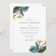 Elegante, tropische Hochzeitsfeiern mit einem Aquarellvogel paradiesischer Pflanze und üppigen tropischen Blätter an den Ecken. Personalisieren Sie den Vogel des Paradieses Hochzeitseinladung, indem Sie Ihre Hochzeitsdetails wie Ihren Namen, Hochzeitsdatum, Zeit, Ort, etc. hinzufügen. Die modernen tropischen Hochzeitsfeiern sind perfekt für Hochzeiten in Urlaubsort!