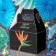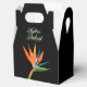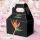Die schwarzen Gable-Gefälligkeitsboxen bieten exotische paradiesische Aquarellfarben-Blume auf der Vorder- und Rückseite mit Ihren Namen oben und eine persönliche Danksagung auf der Rückseite. PASSENDE Einladungen, Teller, Servietten und andere Artikel in unserem Shop.