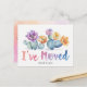 Mit diesem charmanten Aquarellkaktus-Design kündigen Sie Ihre neue Adresse stilvoll an. Diese Postkarte zeigt eine lebendige, farbenfrohe Abbildung blühender Kakteen mit sanftem, ombre-Effekt und schafft eine skurrile und fröhliche Ästhetik, die perfekt ist, um Ihre spannenden Neuigkeiten mit den Lieben zu teilen. Personalisieren Sie es mit Ihrer neuen Adresse und eine süße Botschaft, um Familie und Freunde lassen wissen über Ihren Umzug. Das Design vereint moderne und natürliche Elemente und schafft eine auffällige Ankündigung, die sich von den gewöhnlichen unterscheidet. Teilen Sie Ihre Freude und Ihr neues Kapitel in einer unvergesslichen Weise mit dieser einzigartigen und personalisierten neuen Adressenpostkarte.