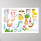 Wasserfarbenkawaii-Doodles abgeschieden auf weißem Poster