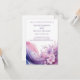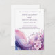 Feiern Sie Ihren besonderen Tag mit unserer exquisiten Hochzeitseinladung, die durch ein elegantes Design in Rosa, lila und Blau geprägt ist. Diese Einladung, die mit zarten Blumenakzenten geschmückt ist, spiegelt das Wesen von Romantik und Raffinesse wider. Ideal, um den Ton für eine thematische Hochzeit festzulegen. Schauen Sie sich unsere komplette Sammlung an, um ein zusammenhängendes und unvergessliches Hochzeitserlebnis zu schaffen.