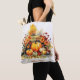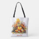 Tote Tasche mit einer Aquarellbild einer Herbstlandschaft im Hintergrund mit Kürbissen und Fallfloralen im Vordergrund und der Wortlaut Autumn Vibes unter Bild in einer Farbe, die zu Bild passen. Mehrere Größen verfügbar. Das Bild muss unter Umständen an unterschiedliche Größen angepasst werden.