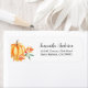 Erstellen Sie Ihr eigenes benutzerdefiniertes, personalisiertes, Rücksendeaufkleber. Die Einrichtung besteht aus einem orangefarbenen Kürbis auf einem Herbstbett mit bunten Blätter. Geben Sie einfach Ihren Namen/Familiennamen und Ihre Adresse ein. Ideal für Geburtstage, Brautparty, Babydusche, Feiertage oder andere besondere Herbstaussendungen der Familie.