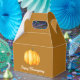 Erntedank Gastgeschenk Boxen mit Aquarellkürbis in Senfgelb- und Ockerfarben.