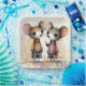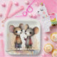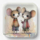 Zwei hübsche Mäuse stehen nebeneinander, in hübschen, farbenfrohen Outfits mit großen, ausdrucksvollen Augen gekleidet