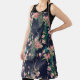 Wasserfarbenmuster Pfau auf einer Baumkirsche, blühende Bäume. Protea Blume, Retrofarben. Baumzweige. Rosa Chrysanthemum