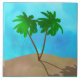 Keramik Kachel gemustert mit einer Beach-Szene aus tropischen Palmen, Sand und Himmel aus einer digitalen Collage von Aquarell und gemusterten Bildern