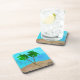 Untersetzer in einer Strandlandschaft aus tropischen Palmen, Sand und Himmel aus einer digitalen Collage von Aquarell und gemusterten Bildern