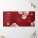 Diese elegante zweisprachige chinesische Hochzeitseinladung mit Aquarellbeinen und einem goldenen Doppelglückssymbol auf dunkelrotem Hintergrund. Braut und Bräutigam Namen in einem eleganten, handgeschriebenen Skript. Einladung zur chinesischen Hochzeit oder Teezeremonie. Mit Ihrem Foto im Zentrum der dreiseitigen Hochzeitseinladung und einem traditionellen chinesischen Text auf der rechten Seite. Auf der Rückseite sind die Details und ein scannbarer qr Code für Ihre Hochzeitswebsite.