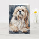 Ein hübsches Aquarellbild eines süßen Shih Tzu auf einer weißen Grußkarte.
