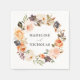 Elegante, herbstliche Servietten mit einem Kranz von Aquarellfarben, Sukkulenten und Blätter in den Farbtönen Rosa, Pfirsich, Orange, Creme, Braun und Grün. Personalisieren Sie die rustikalen Servietten, indem Sie Ihren Namen hinzufügen. Entworfen, um mit unserer Watercolor Rustic Fall Floral Hochzeitskollektion zu koordinieren.
