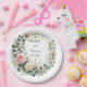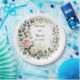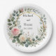 Mit einem zarten Kranz in Aquarell aus weichem Rosa und Weiß, verwoben mit üppiger Vegetation. Dieses Papier-Plattendesign bringt eine Touch von natürlicher Eleganz zu Ihrem Hochzeitsempfang, Brautparty oder jedem anspruchsvollen Event. Die wunderschön gestaltete Blumenkunst verleiht dem Hotel einen romantischen und zeitlosen Charme, der sich sowohl für moderne als auch für traditionelle Hochzeitsthemen eignet. Mit diesen individuell gestaltbaren Tellern können Sie Ihre Namen, Ihr Hochzeitstag oder eine besondere Nachricht hinzufügen, um eine persönliche Touch zu gewährleisten, an die sich die Gäste erinnern werden. Der hochwertige Druck erfasst jedes Detail des Aquarelldesigns und bietet eine raffinierte Ergänzung zu den Tischeinstellungen. Stellen Sie sich vor, die Teller aus Papier ergänzen die Blumenarrangements und die Dekoration der Zimmer. Sie dienen nicht nur dem praktischen Zweck, sondern erhöhen auch die visuelle Anziehungskraft Ihrer Veranstaltung und schaffen so eine zusammenhängende und bezaubernde Atmosphäre.